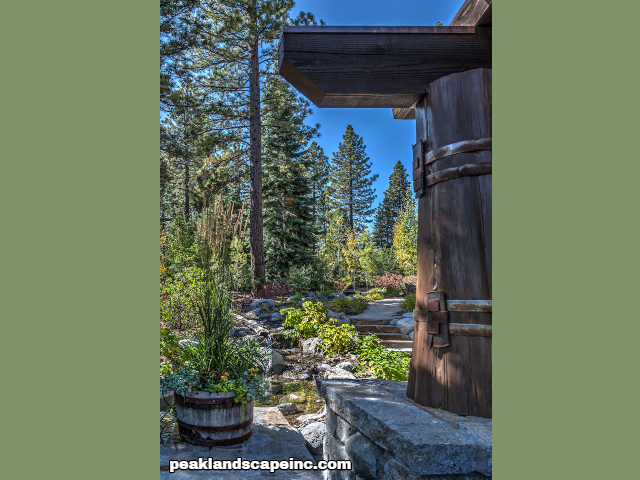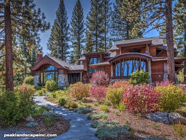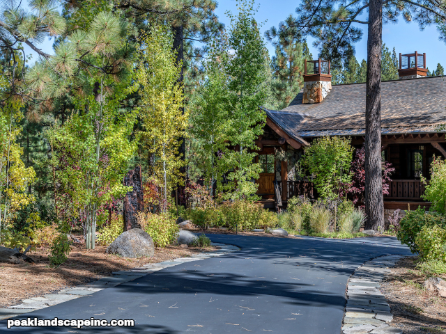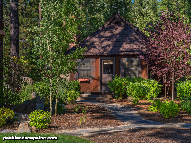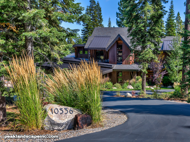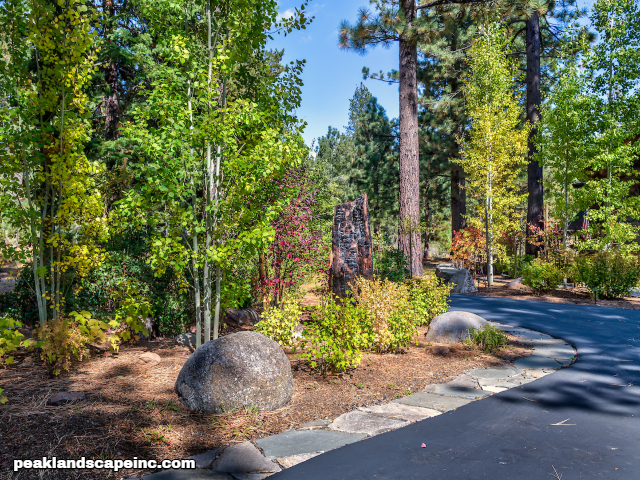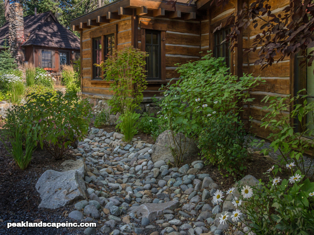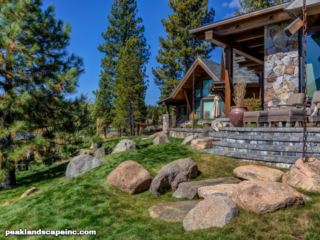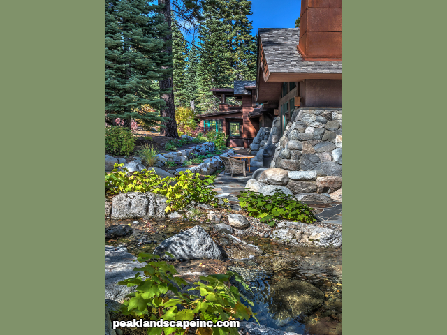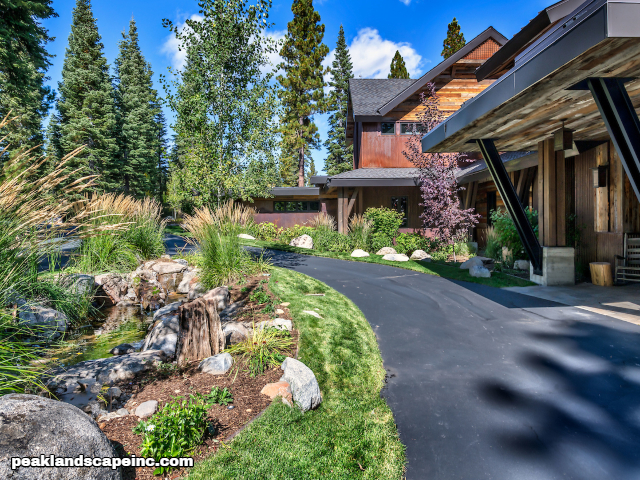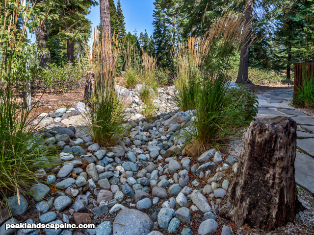 Dry creek across low maintenance Tahoe Donner front yard