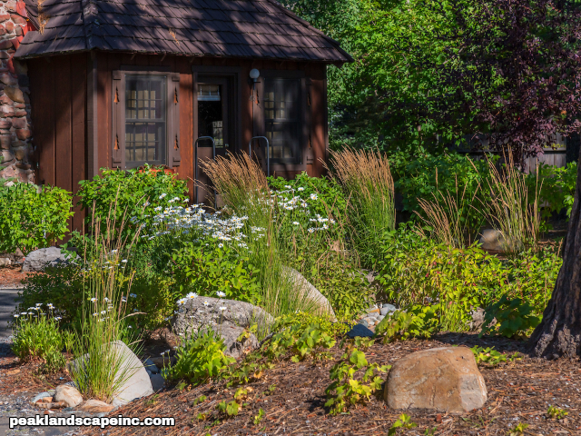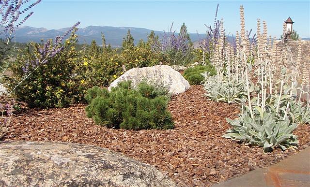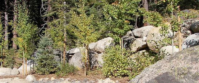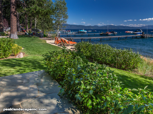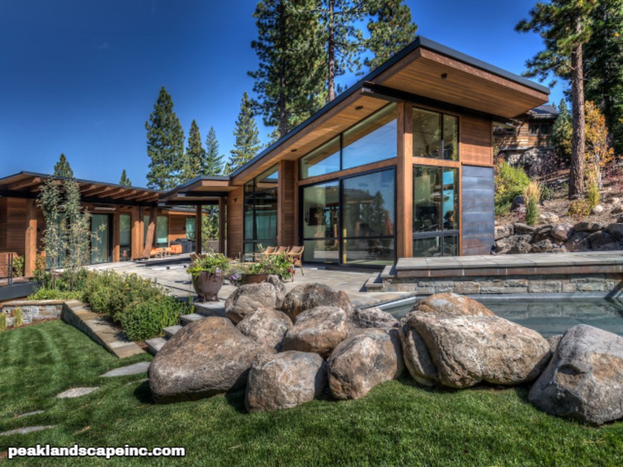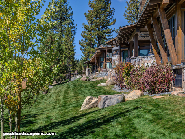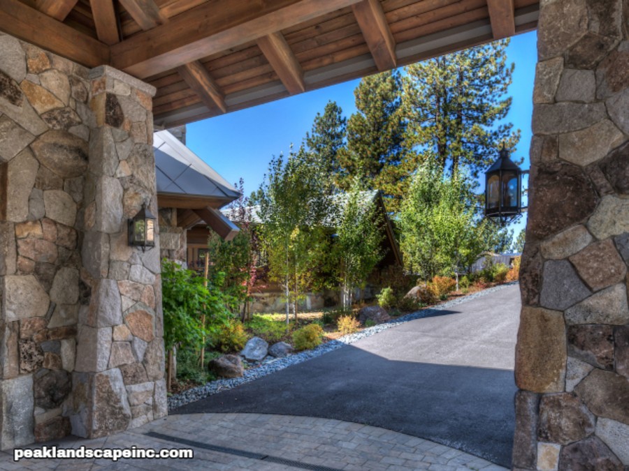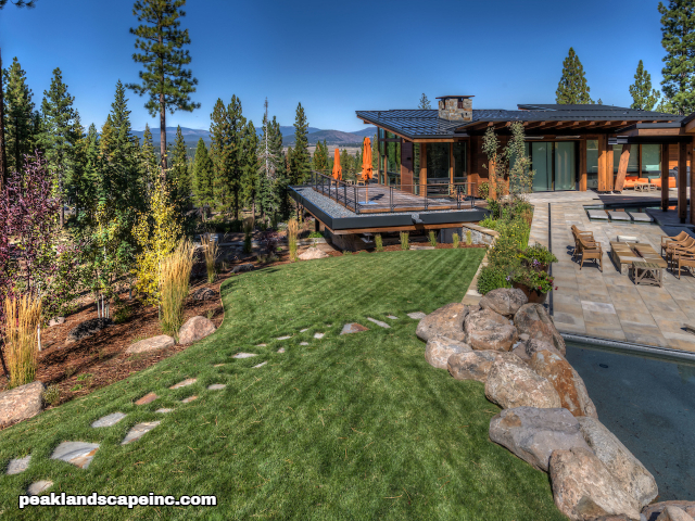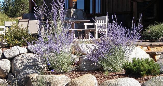 Dry creek across low maintenance Tahoe Donner front yard